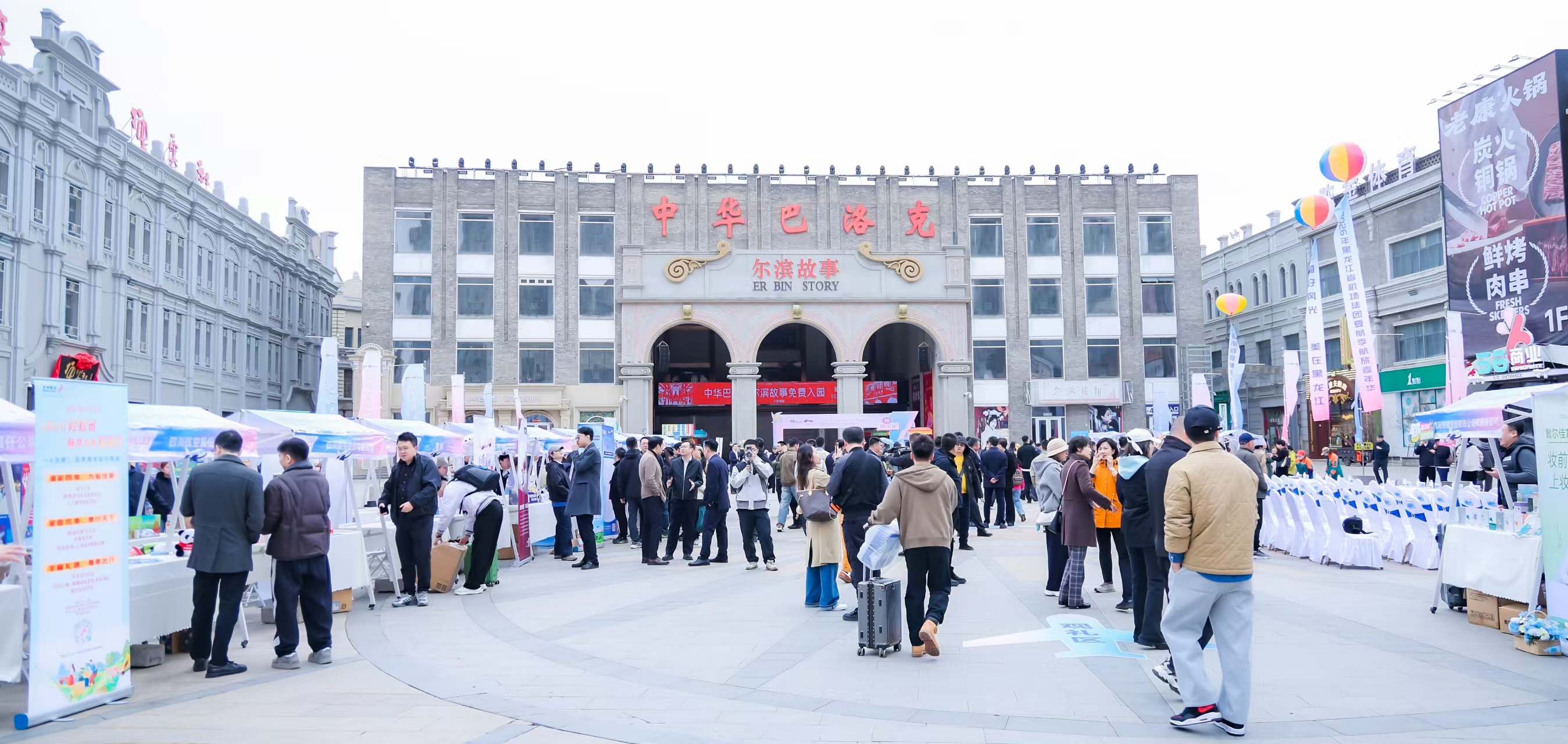 活动主会场设置在老道外大舞台广场及巴洛克街区,场地布置结合百年历史建筑风貌,搭配航空、文旅特色元素,氛围感十足。黑龙江省文化和旅游厅、黑龙江省交通运输厅、兄弟机场、省内各支线机场、多家航空公司、景区及旅行社等近60家单位参加活动。