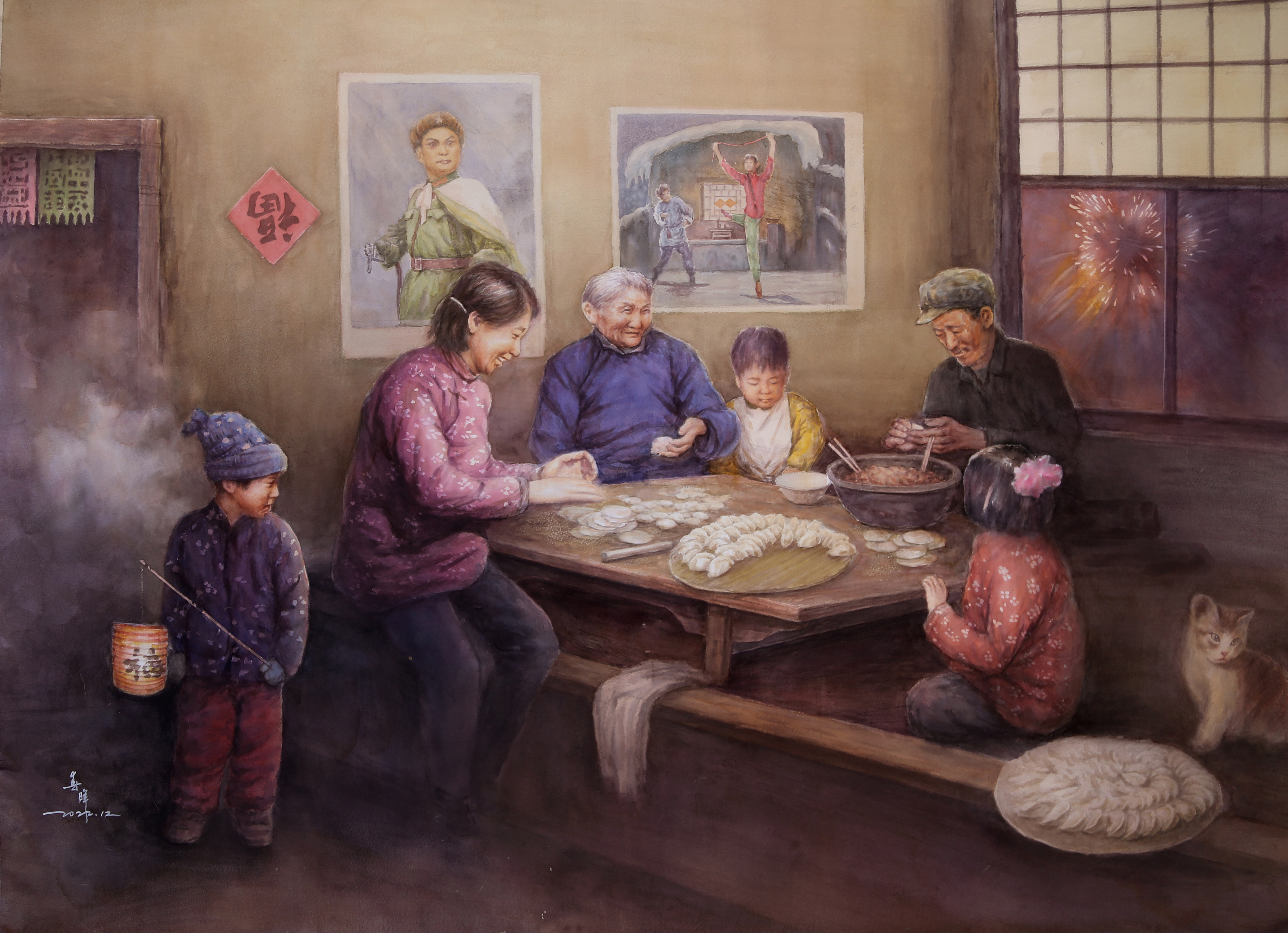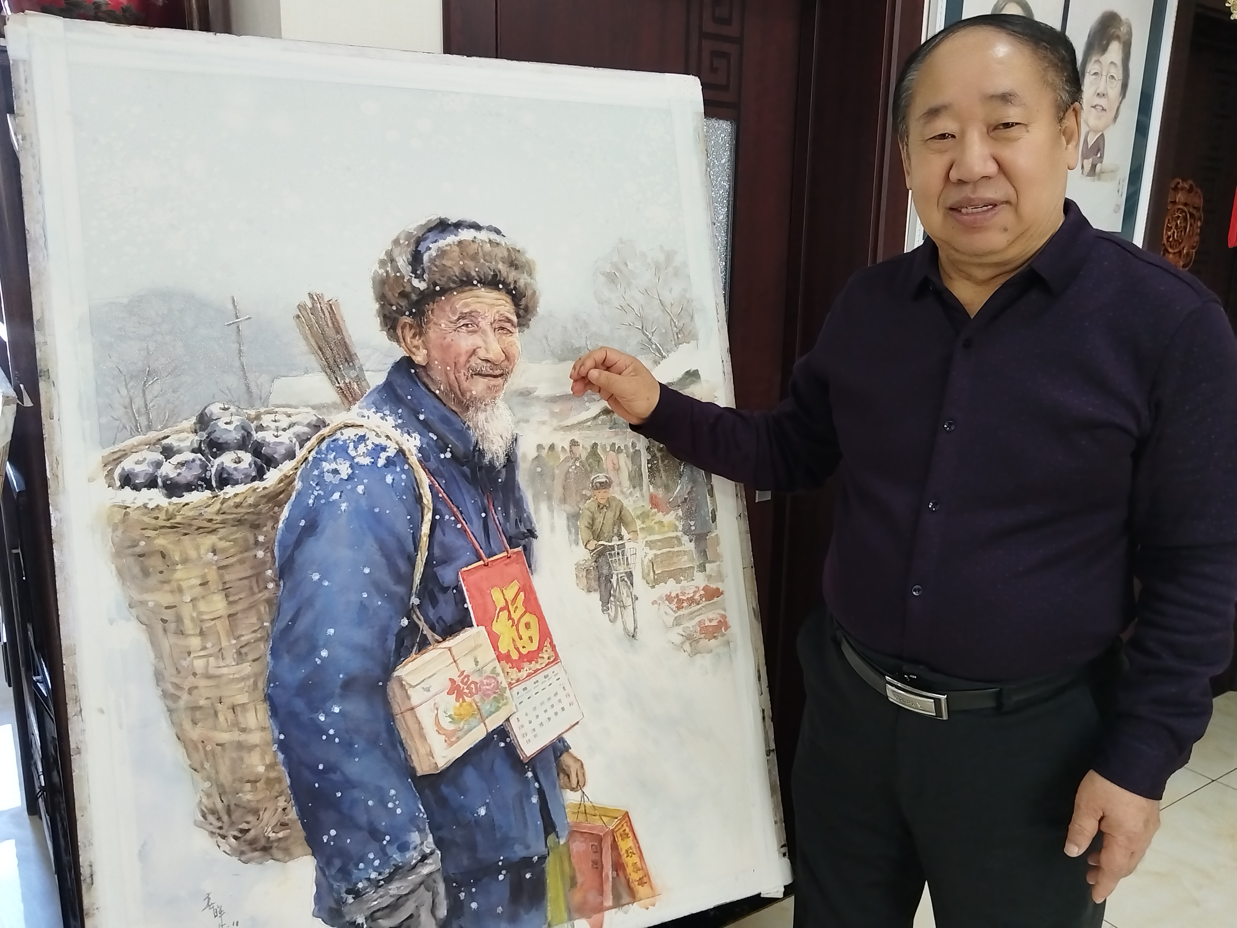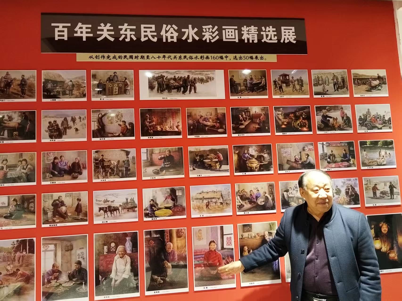 王春晖向记者谈起创作初衷时说,这160幅作品的意义,从文化传承来看,是一场“抢救性的记录”——近百年间关东的地域历史印记、非物质文化遗产,通过多维度的画面呈现,为关东文化研究提供了珍贵的视觉资料,那些即将被遗忘的习俗、技艺,因这组作品得以“活”在当下;从情感共鸣来看,它是一把“唤醒记忆的钥匙”——无论是经历过那个年代的人,还是未曾亲历的后辈,都能从画中找到对过往生活的依恋、对流逝岁月的珍视,进而生出对民俗文化的敬畏与传承之心。