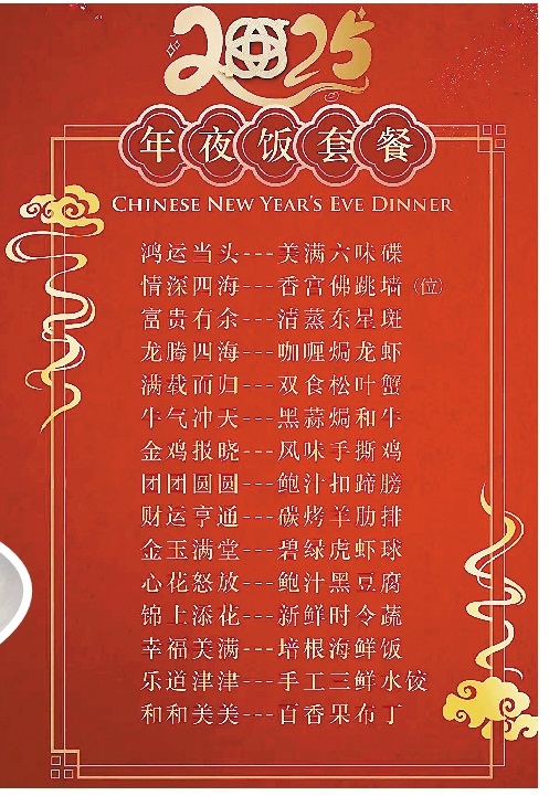 对比多家年夜饭套餐记者发现,2025年年夜饭呈现出以下特点:首先是健康饮食理念的融入,采用低脂、低盐、高蛋白、高纤维的食材,如清蒸鱼、白灼虾等清淡菜品,取代传统的油炸食品和高热量菜品;其次是多元化菜品的尝试,不少餐厅尝试加入一些西式菜品或异国风味的料理,如牛排、意大利面等,为传统年夜饭增添新意;此外还注重文化元素的融合,融入更多的文化元素,如传统节日装饰、民俗表演等,增加节日氛围,让年轻人更好地了解和传承传统文化。