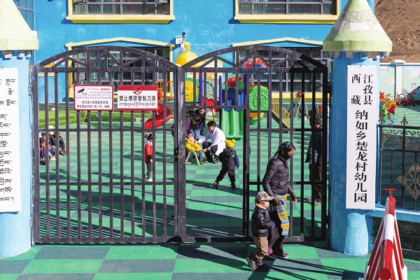 2024年11月28日18时,牡丹江市夜幕降临,而西南边陲的西藏自治区日喀则市江孜县,阳光依旧耀眼。江孜县日星乡小学教室前,晒太阳的藏族老人三三两两凑在一块,一边用牦牛毛纺线,一边看着医疗队员为孩子们听诊。记者从北京出发,搭乘飞机、火车一路辗转,又驱车翻过海拔4919米的彭果拉山,与牡丹江心血管病医院赴藏医疗队会合。