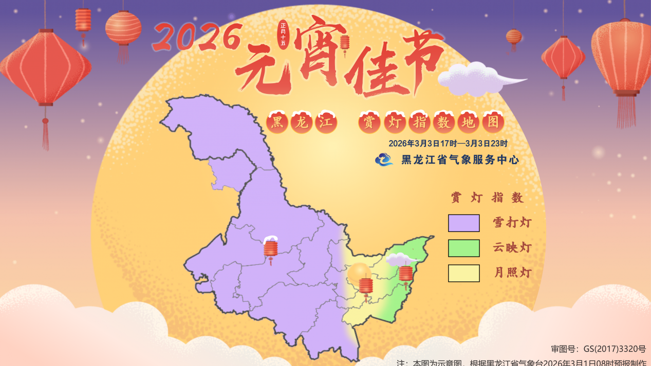 3月3日:大兴安岭、黑河、齐齐哈尔、绥化、伊春、大庆、哈尔滨、牡丹江地区,元宵节当天有小雪或中雪,局地可能有大雪,雪花飞舞映衬绚烂灯火,将呈现“雪打灯”的独特景致,赏灯时需注意路面湿滑;佳木斯东部、双鸭山东部、鸡西东部地区,元宵节当晚云量较多,彩云遮月,柔和的云层为灯光增添了朦胧美感,更显温馨氛围;鹤岗、佳木斯西部、双鸭山西部和鸡西西部地区,元宵之夜天气晴朗,明月当空,皓月与灯火交相辉映,为赏月、赏灯活动提供了极佳的气象条件,市民可在户外尽情欣赏璀璨灯海,感受“月上柳梢头,人约黄昏后”的浪漫意境。