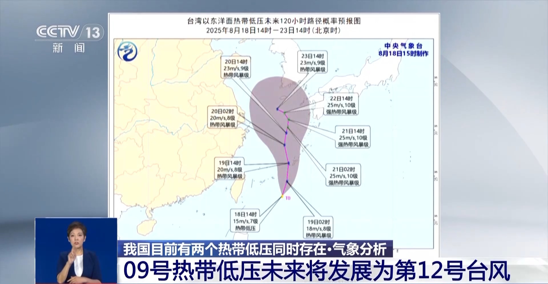 09号热带低压,它于今天上午11时在台湾以东洋面生成,预计今晚将加强为热带风暴,风力达到8级。