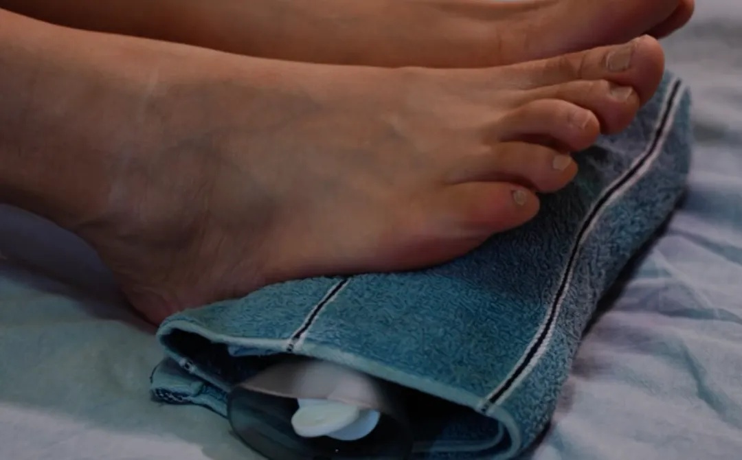将暖水袋/电热宝加热后,用毛巾包裹(防烫伤),置于脚旁或脚下,随时为脚部供暖。