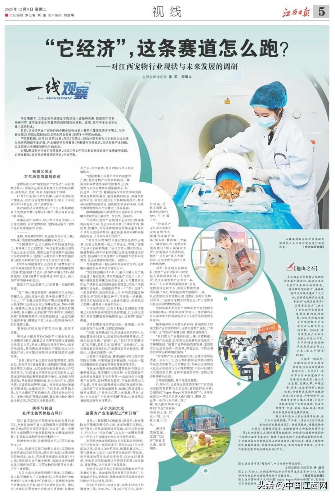不仅是章贡区,江西日报社(江西报业传媒集团)也在积极布局宠物经济赛道,已上线全国首个科研支撑型宠物融媒平台大江新闻“宠爱”频道。