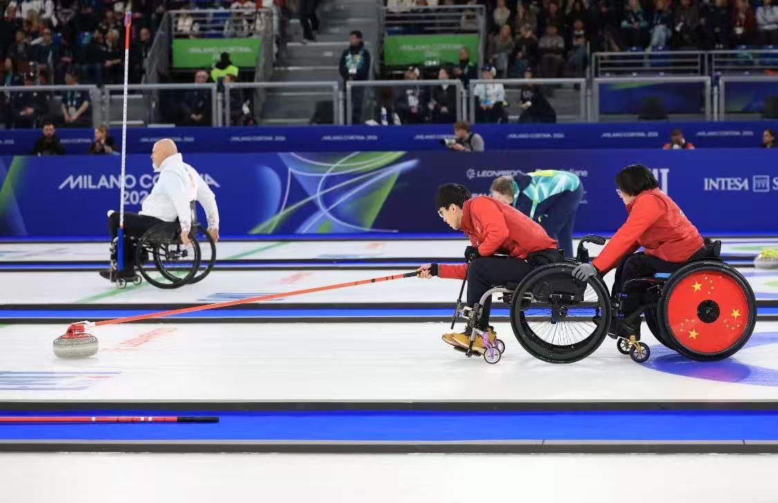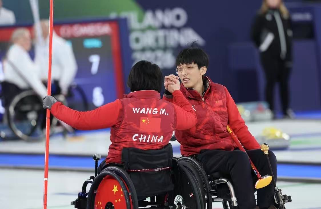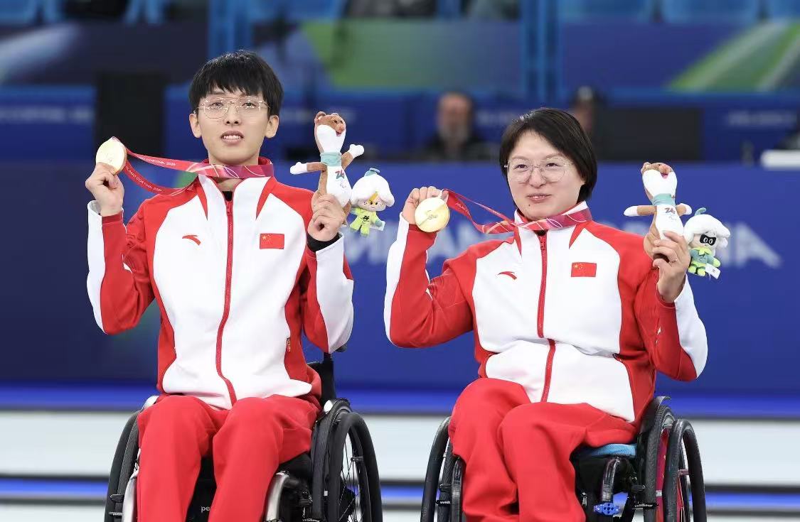 冬残奥会历史上首枚轮椅冰壶混双金牌就此诞生,冠军属于中国组合王蒙/杨金桥。看台上的中国观众欢呼雀跃,这也是米兰—科尔蒂纳冬残奥会中国体育代表团收获的第十枚金牌。