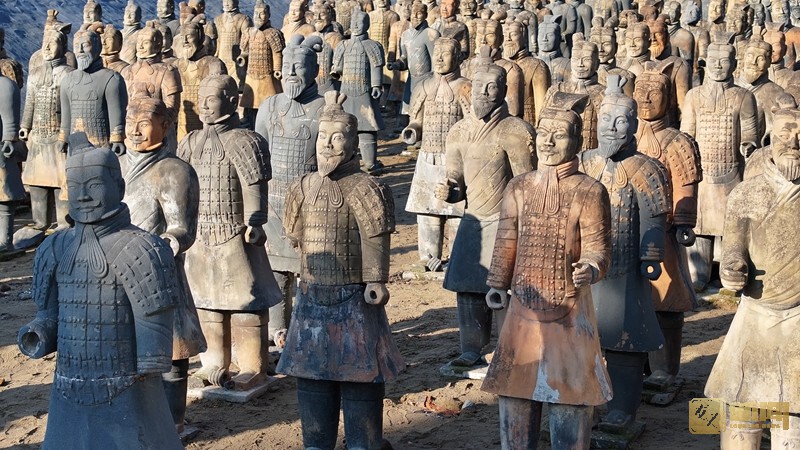 踏入景区,数百个兵马俑整齐排列,或伫立、或跪射、或驾车,栩栩如生的神态,逼真的造型,让人不禁为之惊叹。这些兵马俑是景区在厂家定制的仿制品,高度还原了秦朝时期的武士形象,每一尊兵马俑身上都承载着厚重的历史信息。他们坚毅的面容、威武的身姿,仿佛在无声地诉说着那个金戈铁马的时代,唱响秦始皇横扫六国、统一中原的壮阔史诗。