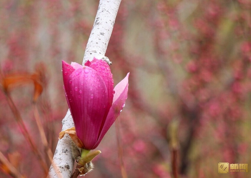 走近公园,远远就看到一红一粉两棵玉兰花开得正旺。一夜的小雨,将整株玉兰树洗得干干净净,站在不远处望去,那些被雨水冲刷过的花瓣呈现出半透明的质感。