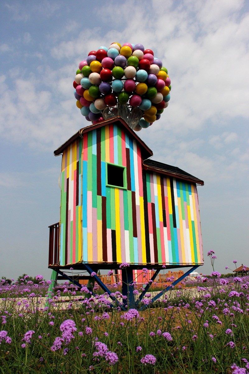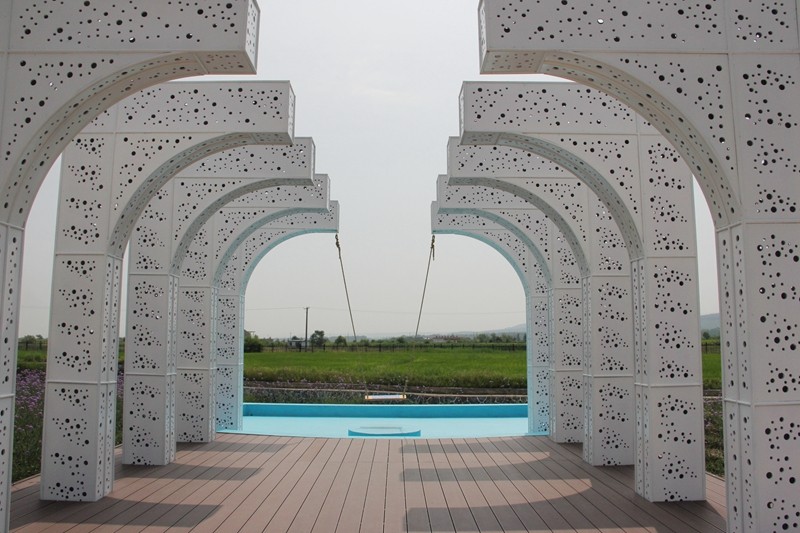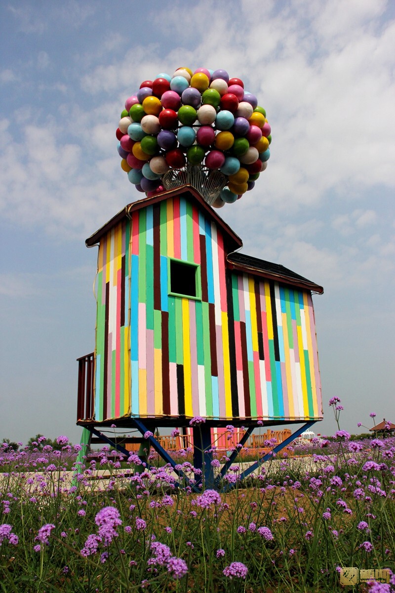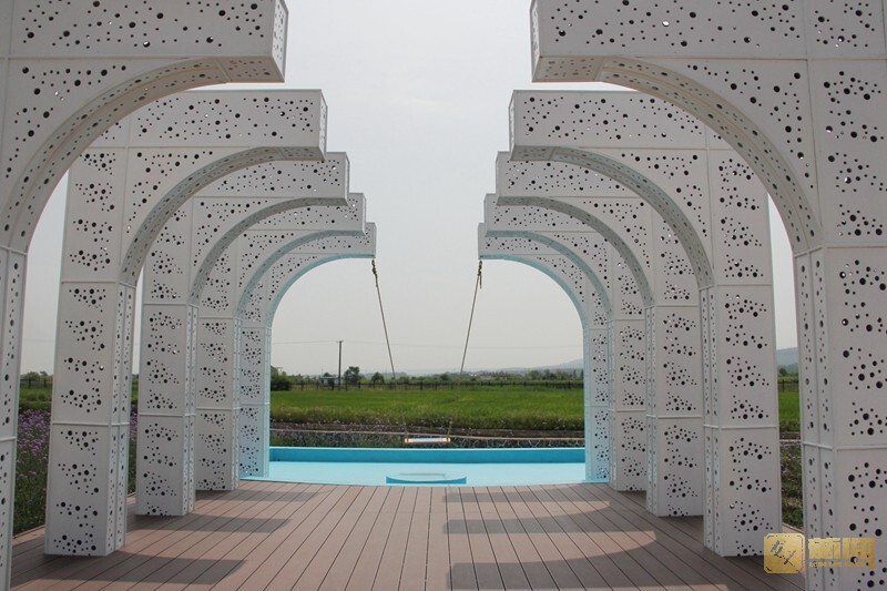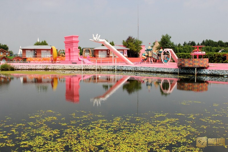 沿着木栈道深入,“高光时刻” 相机造型打卡点超吸睛。穿稻田而过的红栈道,把田园风光框成天然滤镜。再往前,粉色“凯旋门” 矗立沙滩,繁花簇拥,搭配白色滑梯、彩虹装置,大人小孩都玩得不亦乐乎 。