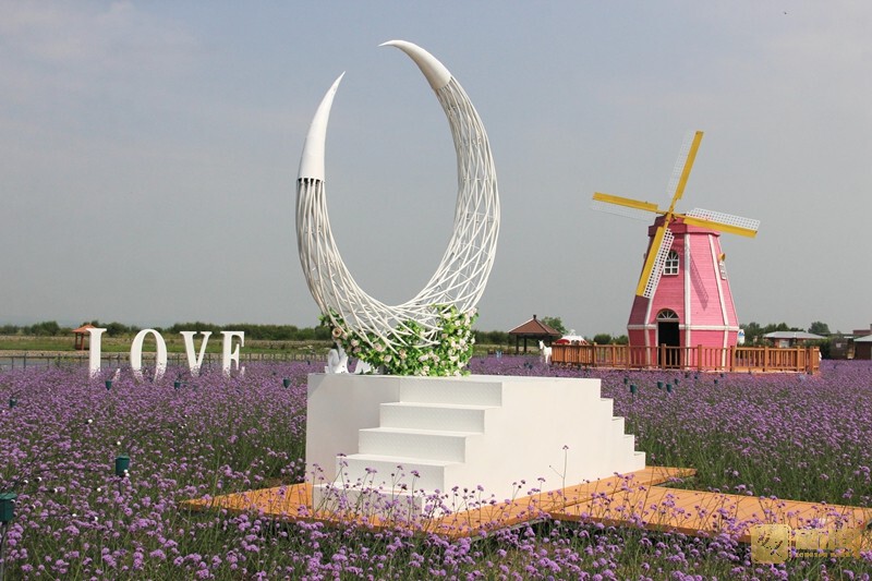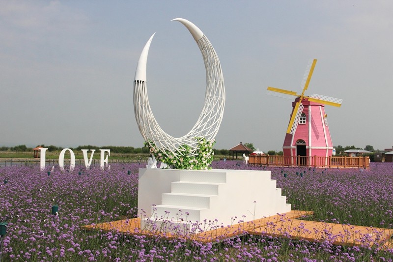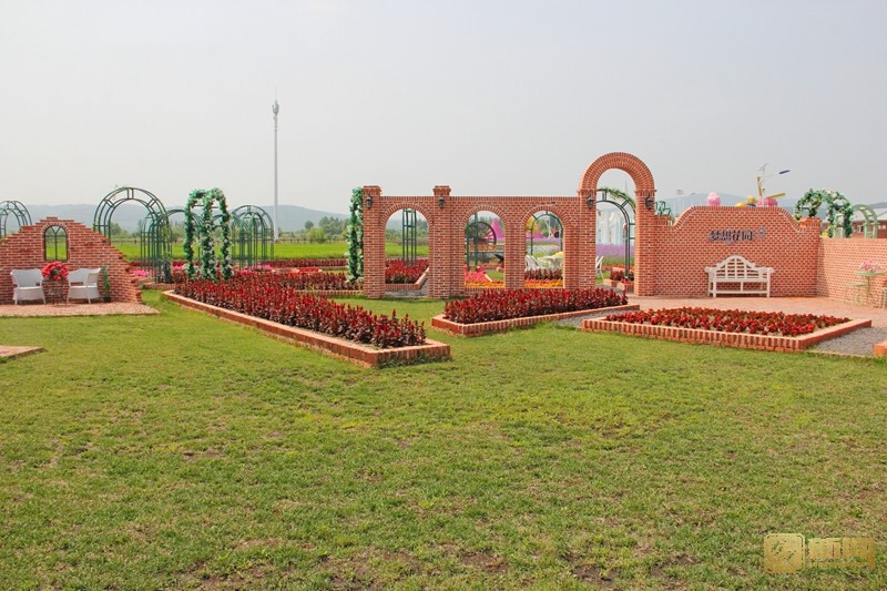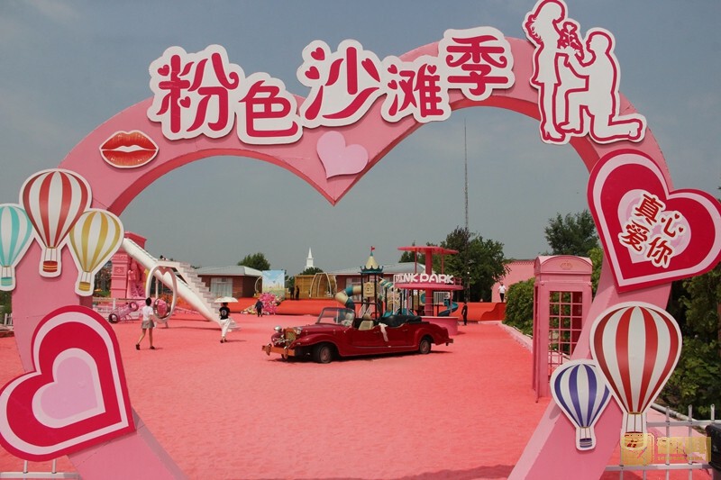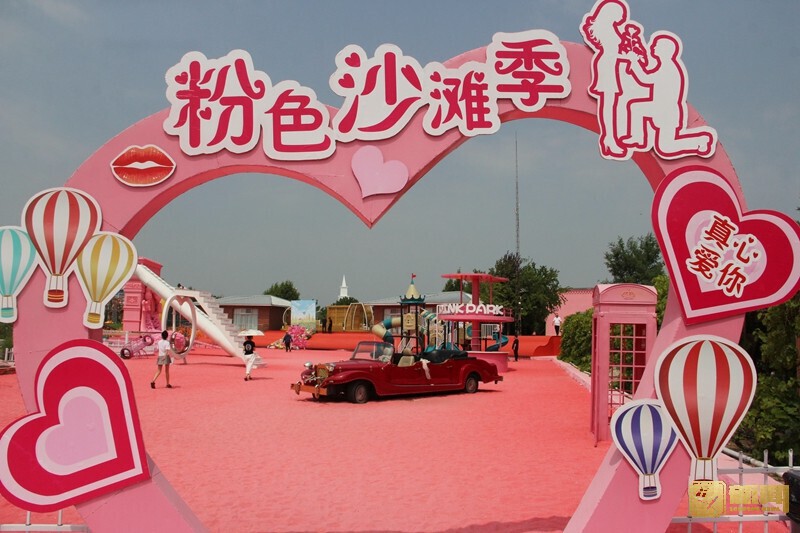 粉色沙滩区,心形拱门写着“粉色沙滩季”,热气球、爱心装饰点缀,复古红车停在粉沙上,甜蜜满溢。情侣们牵手漫步,连空气都飘着粉红泡泡 。穿过拱门,“梦想花园” 里,砖石花畦规整排列,绿植攀援,繁花簇拥,一步一景,像是闯入童话世界 。
