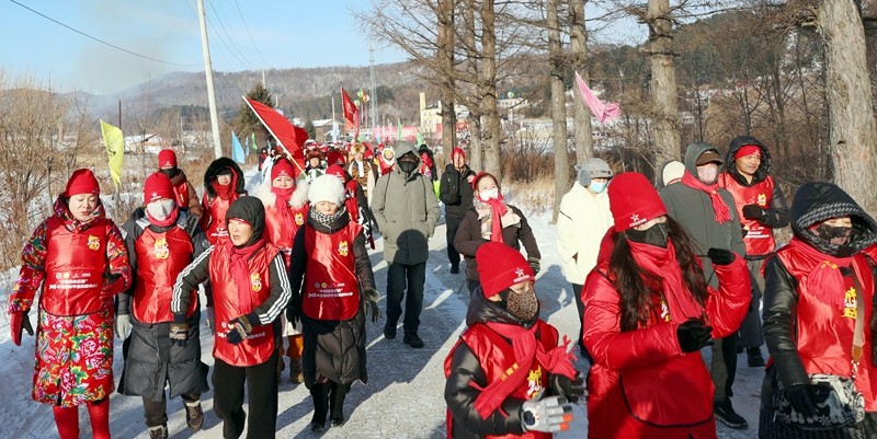 这里曾是“智取威虎山”故事的发生地,银装素裹的松涛林海间,徒步者踏着冬日暖阳前行,厚实积雪上“嘎吱”作响的脚步声,奏响独特的冰雪交响。五彩参赛服组成的长队如巨龙蜿蜒于威虎山间,专业团队比拼速度激情,亲子团共享并肩时光,老年团喊着“我运动、我快乐、我健康”的口号奋勇争先。
