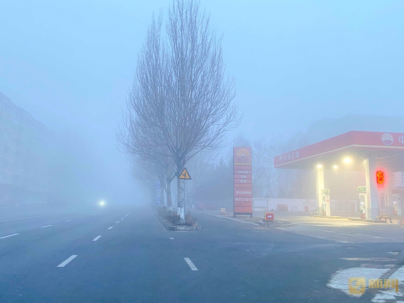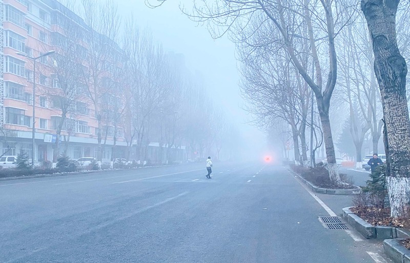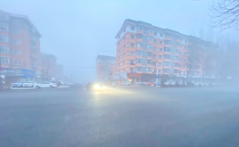 清晨的街道安静而温柔,漫天白雾扑面而来,远处的楼宇、树木、街巷都被雾气轻轻柔化,轮廓朦胧,若隐若现。平日里熟悉的小城,此刻多了几分诗意与神秘。