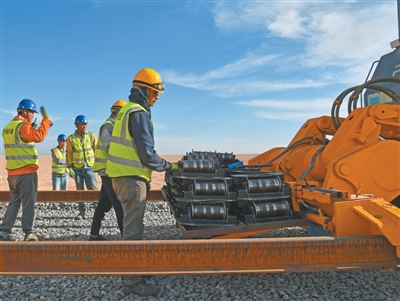 项目监理、轨道施工负责人比拉勒对中国设备的性能表现赞不绝口:“中国CPG500长轨铺轨机颠覆了我的认知。”他表示,该设备可以一次性铺设500多米长轨,定位精准、连续作业能力突出,“即便在55摄氏度高温、风沙频发、昼夜温差悬殊的沙漠环境中,仍能保持稳定运行。这份可靠性在荒漠施工中尤为可贵”。