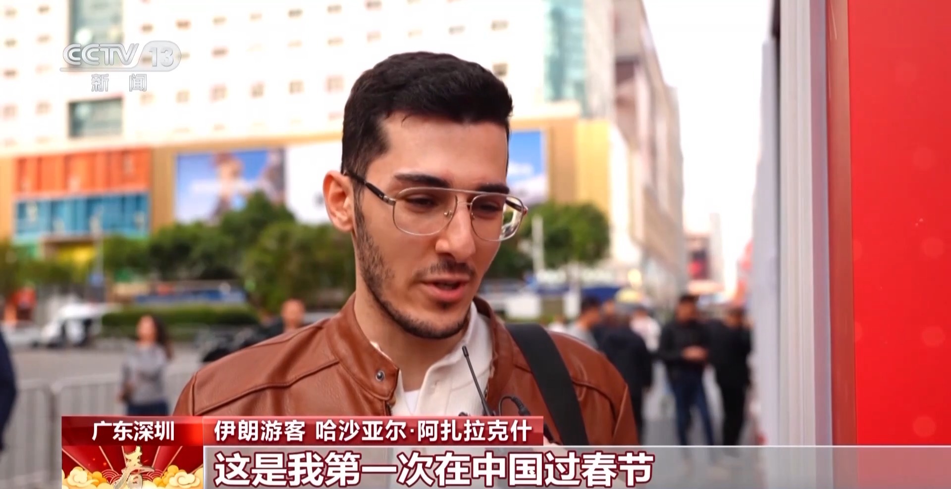 伊朗游客哈沙亚尔·阿扎拉克什:这是我第一次在中国过春节,我真的很喜欢这里。今年春节也有很多新的AI产品上新,AI现在已经无处不在了,今年有很多新事物正在被AI赋能。