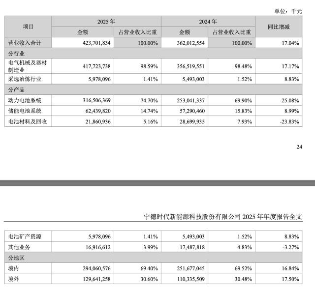 3月9日晚,宁德时代发布2025年年度报告,公司实现营业收入4237亿元,同比增长17%;归属于上市公司股东的净利润722亿元,同比增长42%。据悉,宁德时代2025年度利润分配预案为每10股派发现金分红69.57元(含税),已连续三年以归母净利润的50%实施现金分红。